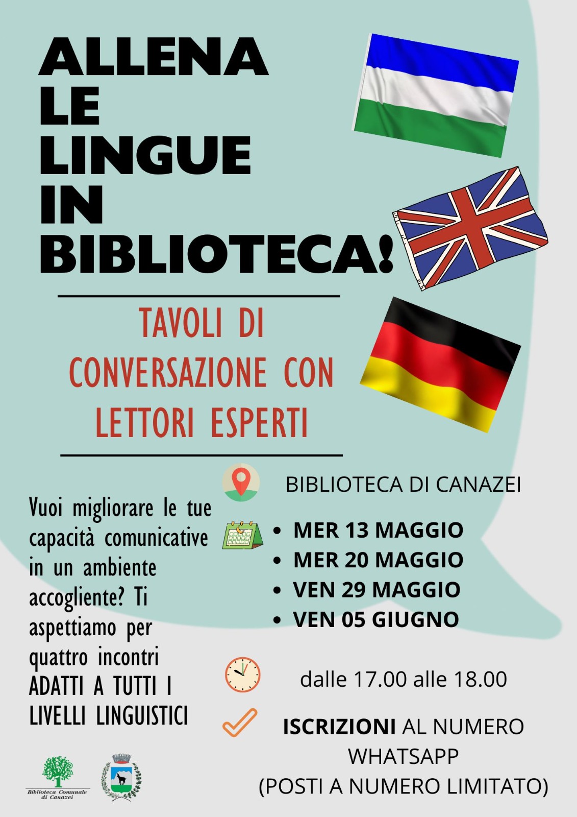 Cos'è Vuoi migliorare le tue capacità comunicative in un ambiente accogliente? Ti aspettiamo per quattro incontri- mercoledì 13 maggio- mercoledì 20 maggio- venerdì 29 maggio- venerdì 5 giugno